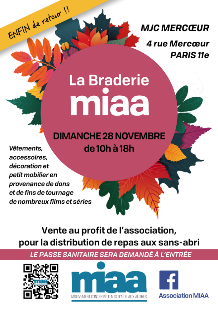 de 10h à 18h, vous pourrez revenir à la grande braderie d’hiver de MIAA, le Mouvement d’Intermittents d’Aide aux Autres !
