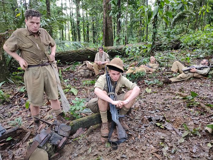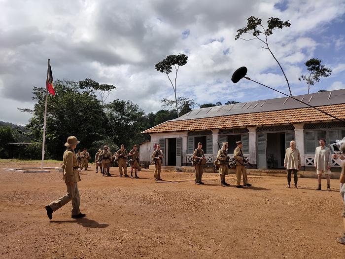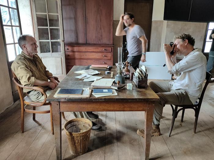 Début de tournage en Guyane, dans des conditions difficiles (pluies tropicales, décors en pleine forêt, bestioles…) du film de David Oelhoffen (Loin des hommes, Frères ennemis) « Les derniers hommes », produit par Galatée films (Jacques Perrin), décorateur Pascal Le Guelec, accessoiriste François BORGEAUD.